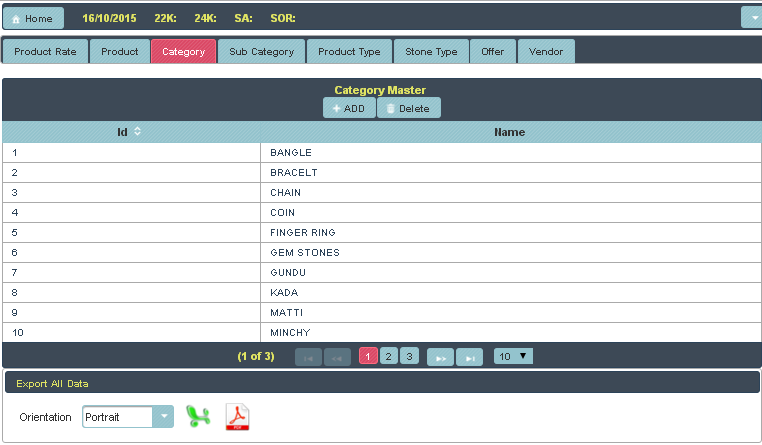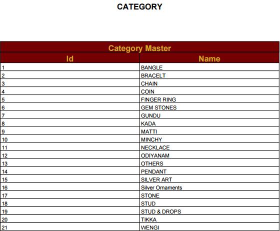 Here first create a category, category means types of gold say ear ring, hand ring, nose ring and other category type of gold you can create here.