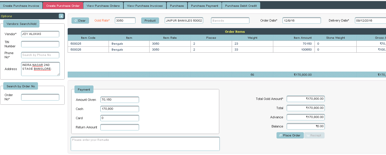| Here Vendors Name and Phone number is mandatory field. |