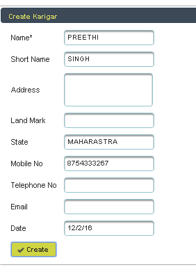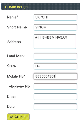Here Karigar phone number are mandatory. You must enter to Create Karigar. |