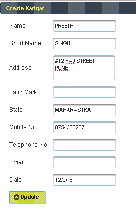 To Update the details of Karigar, Click on the Name of Karigar to whom you want Update |