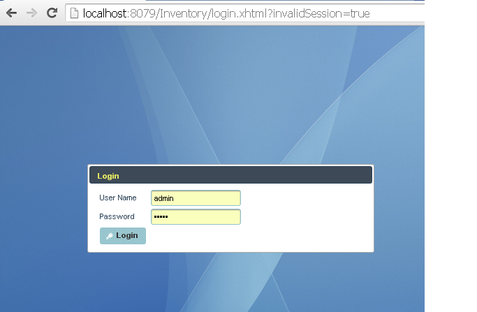 | Login Steps Open Google Chrome browser and type the below url, JewelleryAdmin login page will be displayed as shown below. The default URL for accessing the JewelleryAdmin Server is http://localhost:8080/JewelleryAdmin Enter the user name and password, the default user name and password is as show below. if you have created your own user name and password enter those details and click on Login button. On successful login you will be in the JewelleryAdmin dashboard. User Name: admin Password: admin |
