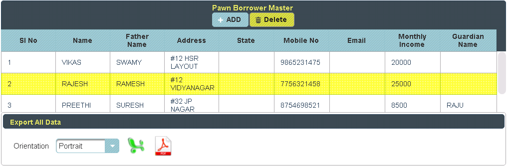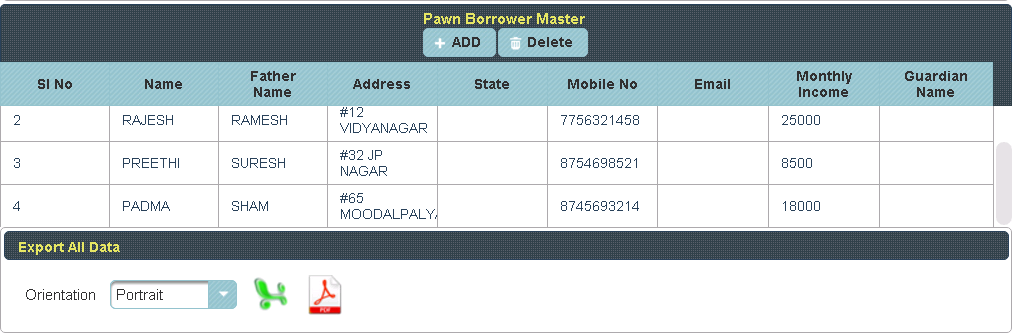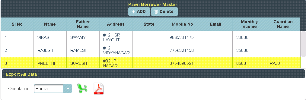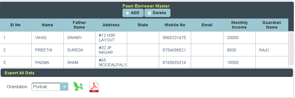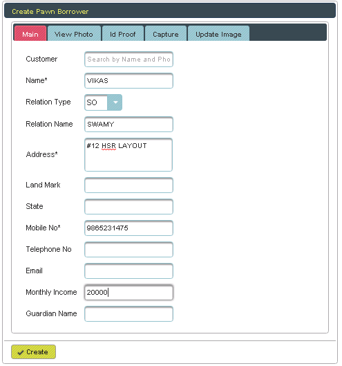 Here Borrowers Name, Phone number & Address are Mandatory field. |