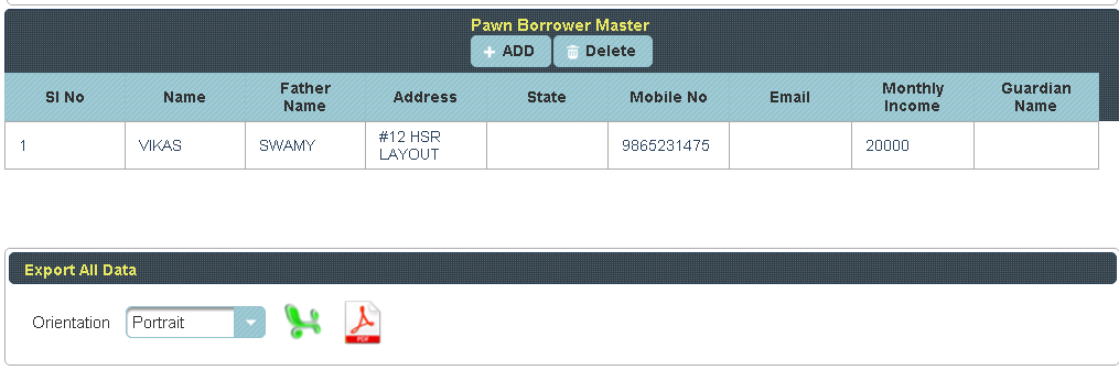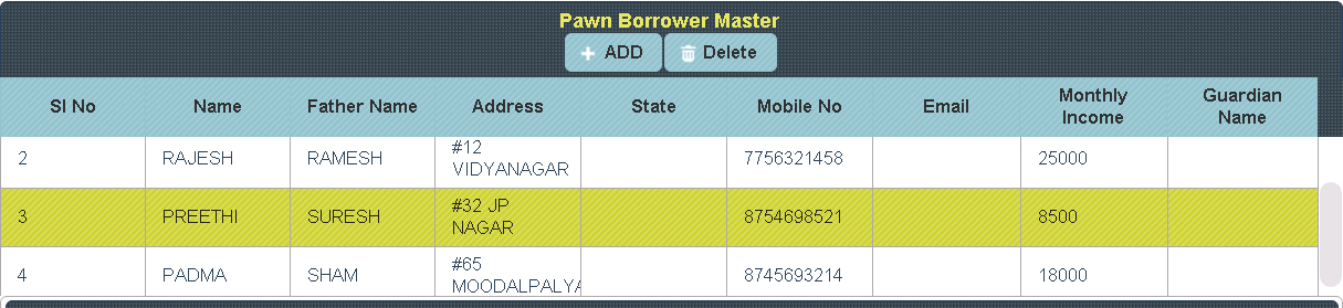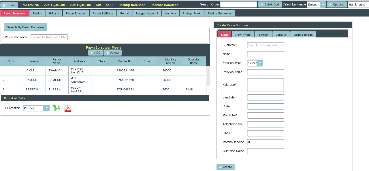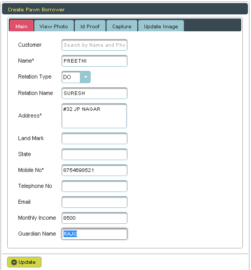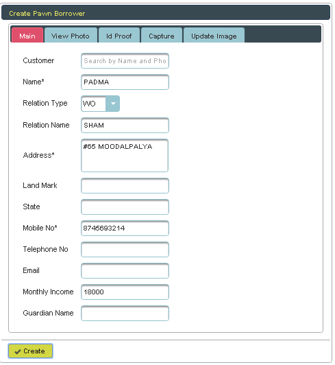 This menu helps you to create the Pawn borrowers. |