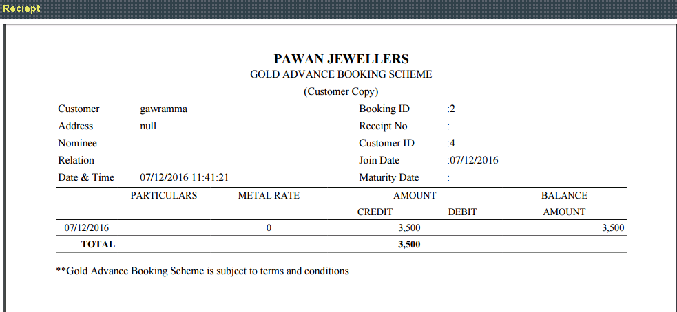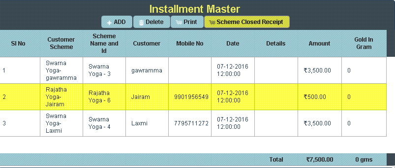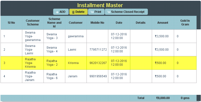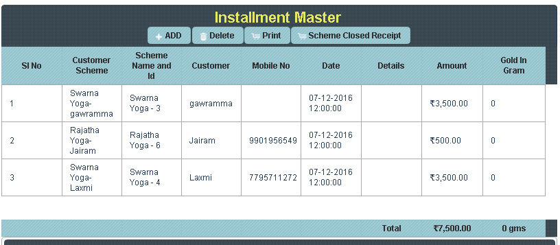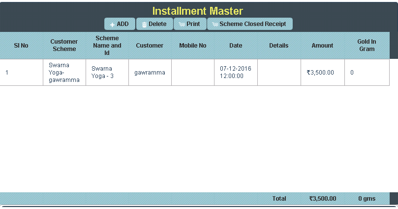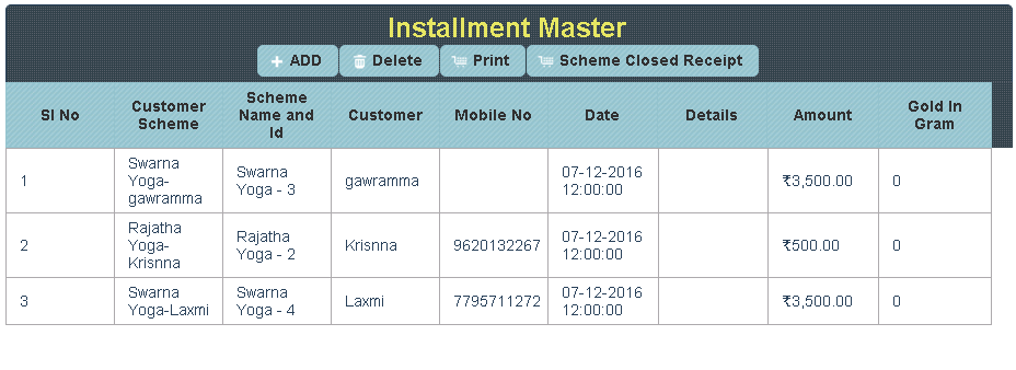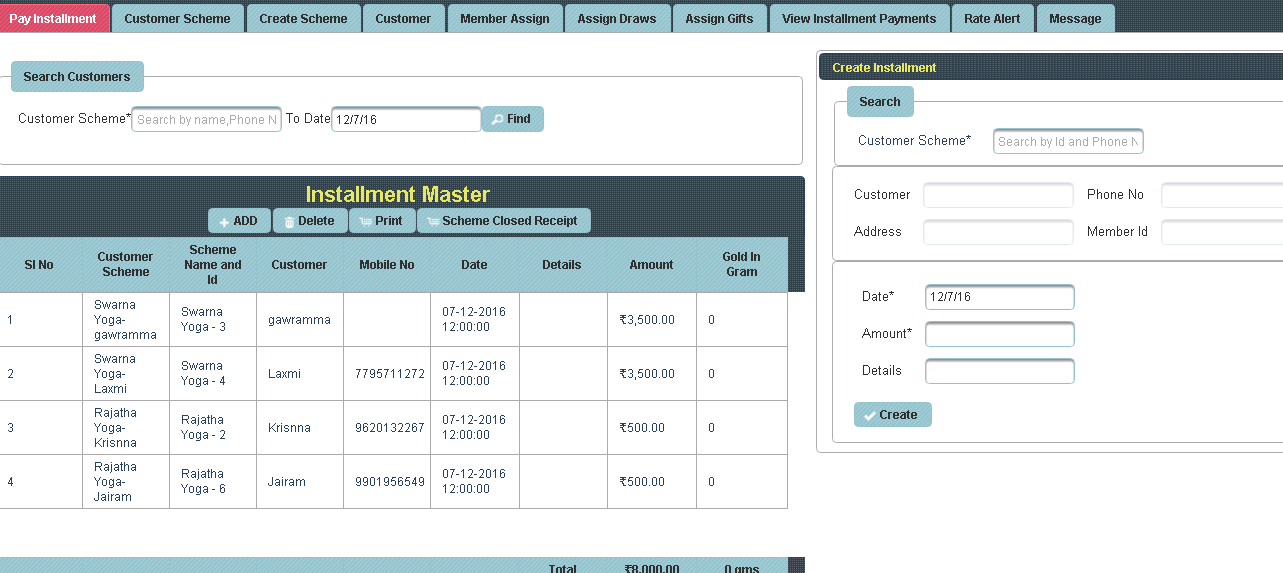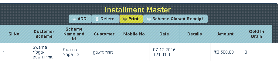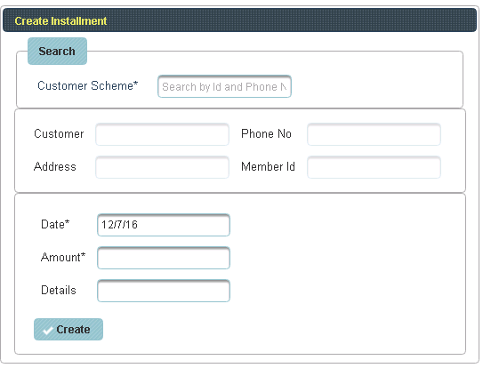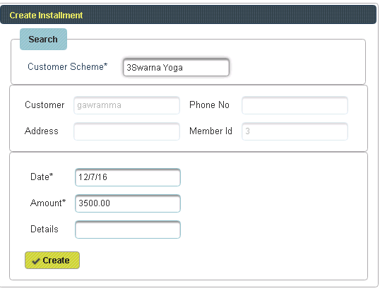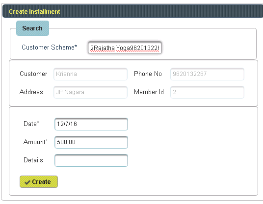 This page helps you to record the installment amount paid by customer for their schemes. |