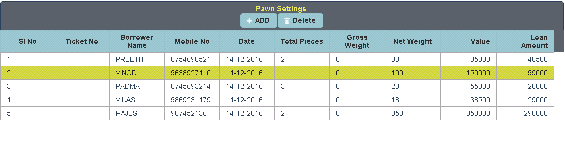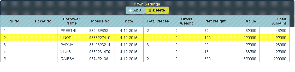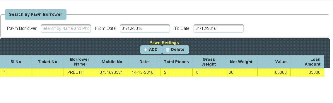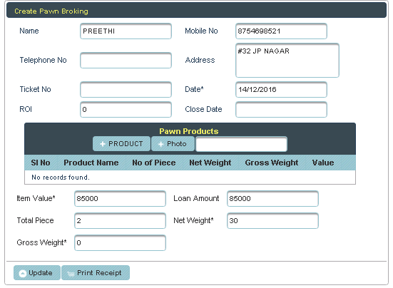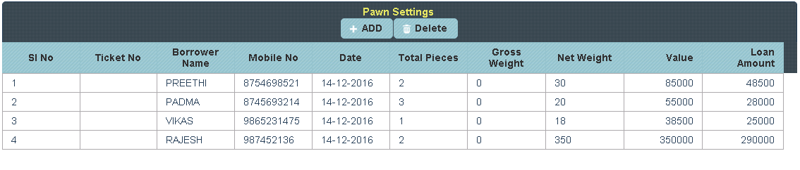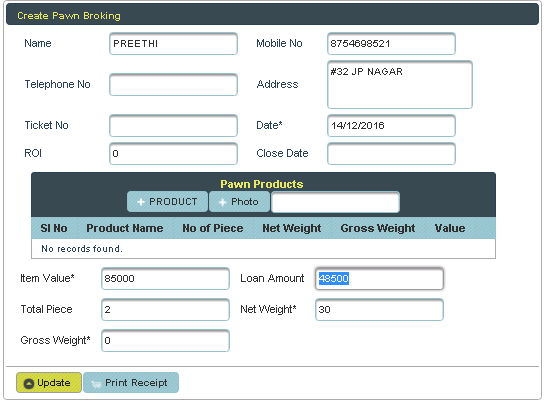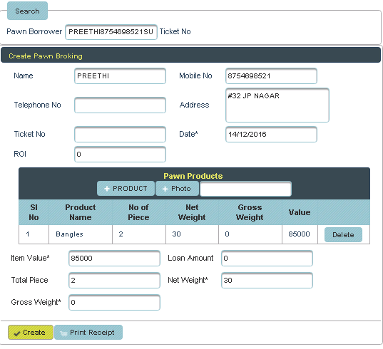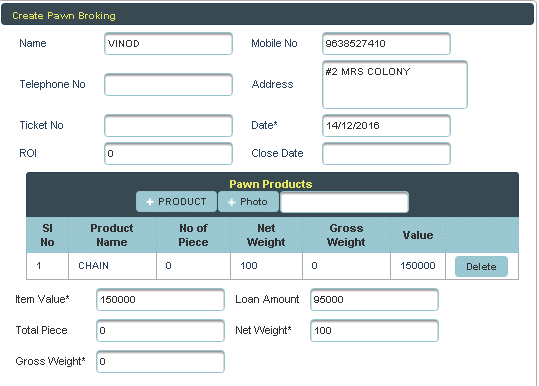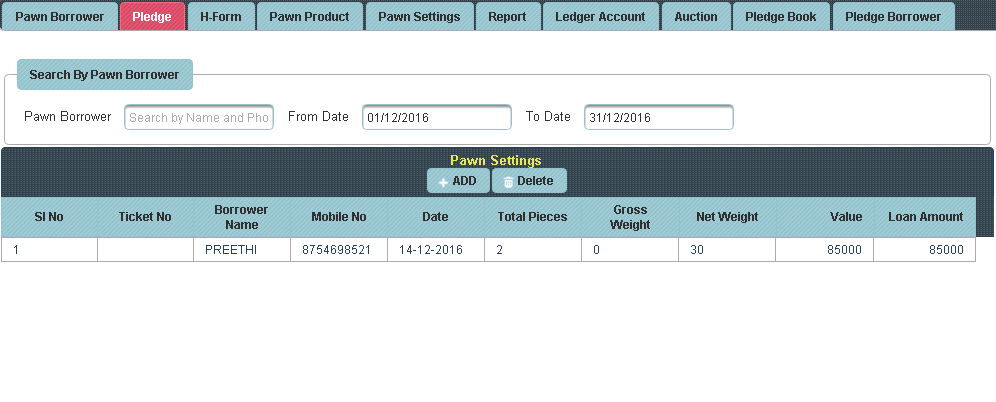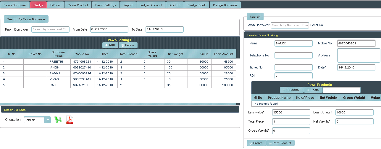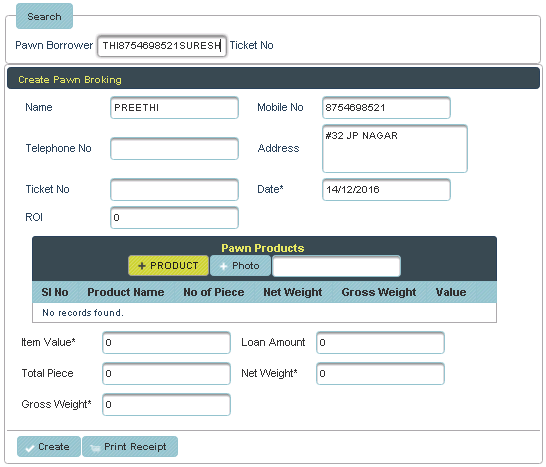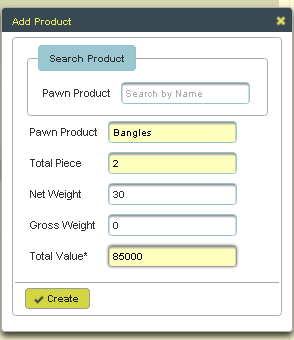 This menu helps you to save the details of Pledge products along with Pawn Borrowers. |