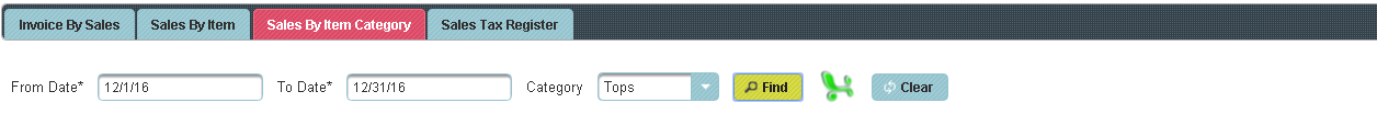 In home page, Select Reports. Third menu is Sales By Item Category.