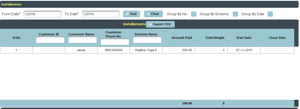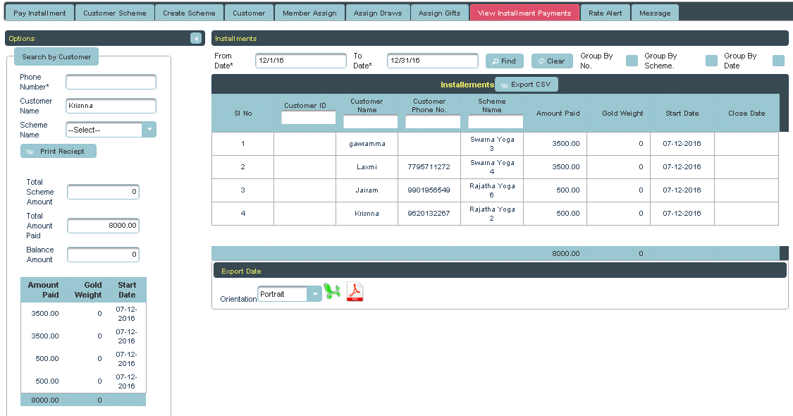 In home page, Select Schemes. Eighth menu is View Installment Payment.