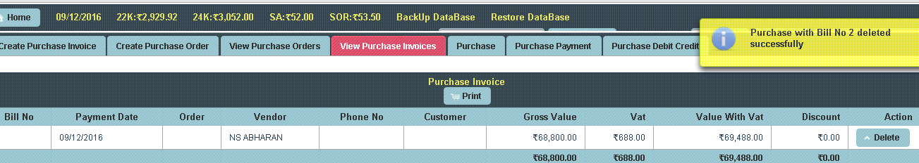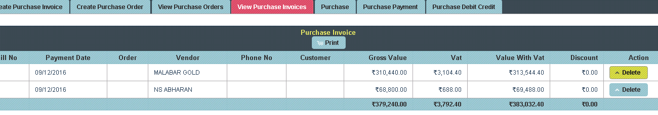 In home page, Select Purchases. Fourth menu is View purchase invoice.