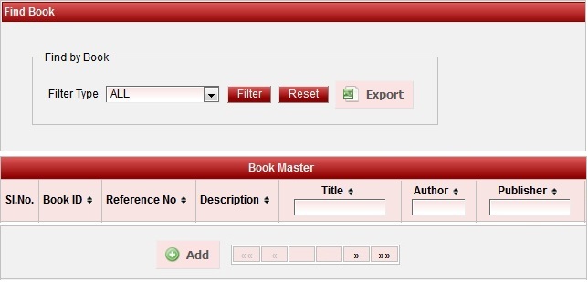 Step 2: Once you click on Books  menu in the Library Master, books master will be opened as shown below.