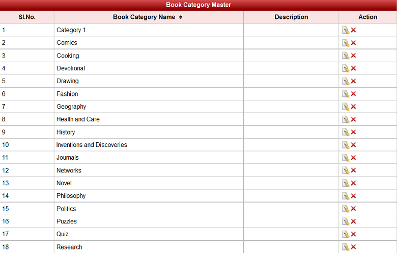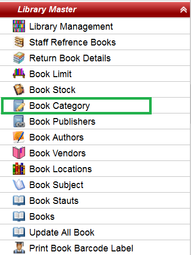 On clicking, Book Category, Book Category Master page will be displayed as shown below.