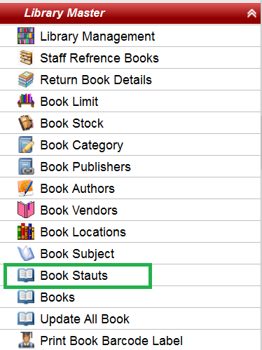 If the Status is not added in the Book Status module, the status won't be displayed in the drop down list. |
