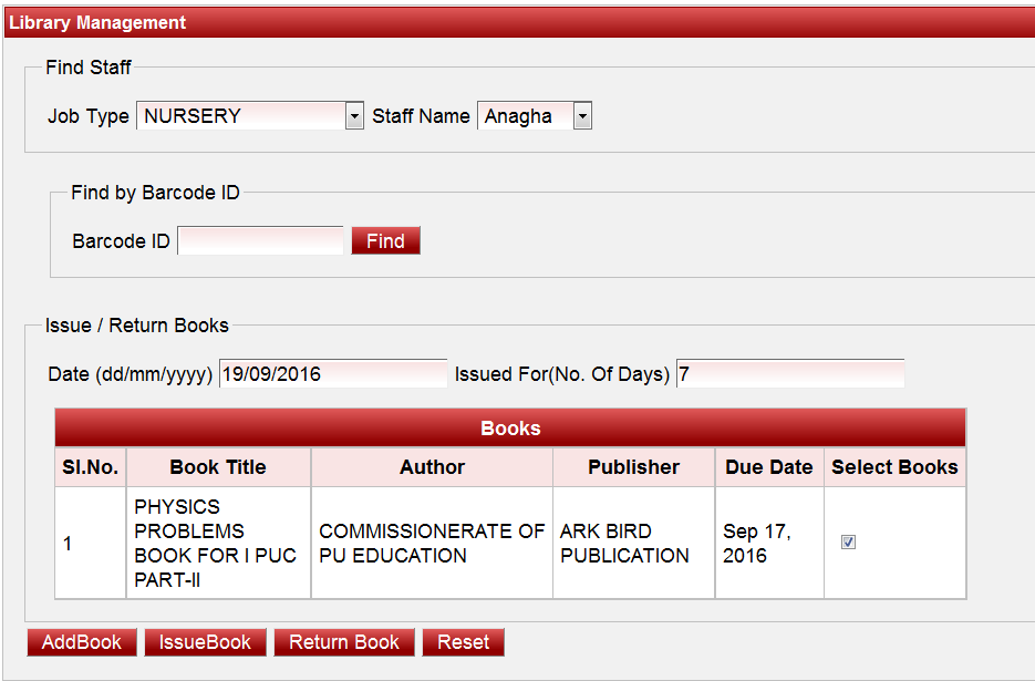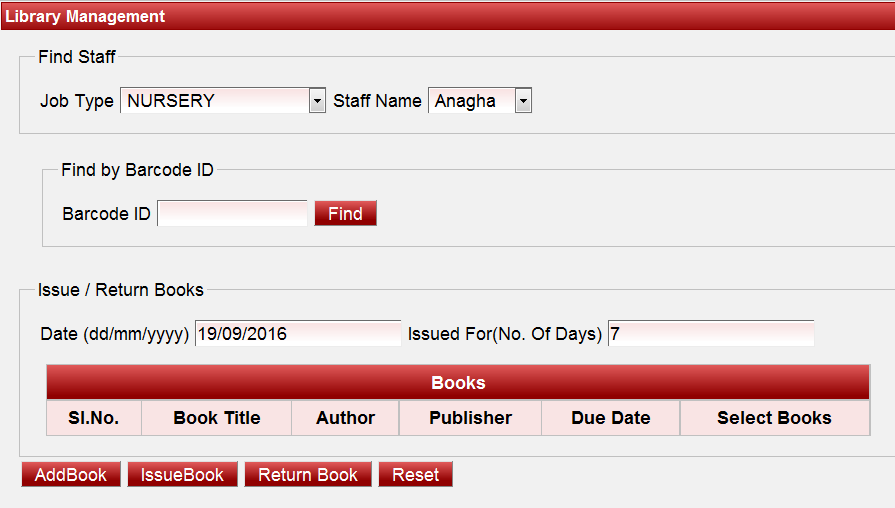 - Enter the Reference ID of the book that has to be issued as a reference book to the staff.