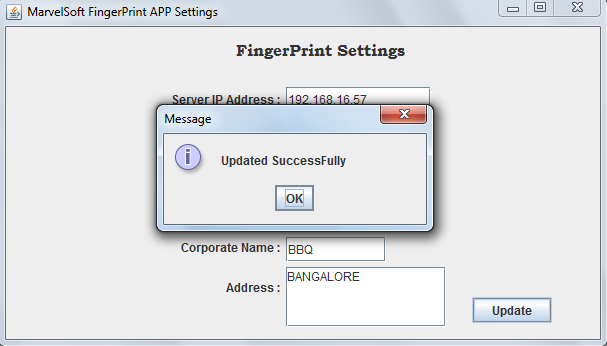 Upon clicking Update button following message will be displayed as shown below.