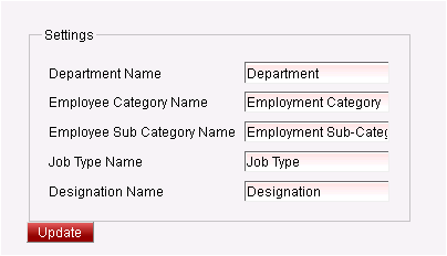Select Customizable Naming settings to give a different name for the department,employee category, employee sub-category, designation and jog-type.