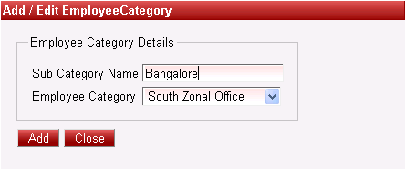 On click on the ADD button, employee Sub-Category is added successfully. Employee Sub-Category master window is as shown below.