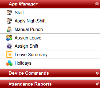 On clicking APP MANAGER tab there are certain sub tabs as shown below. However you can access only Leave summary and Holidays.