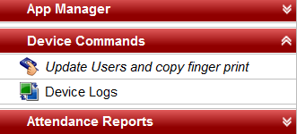 On clicking DEVICE COMMANDS tab there are certain sub tabs as shown below.
