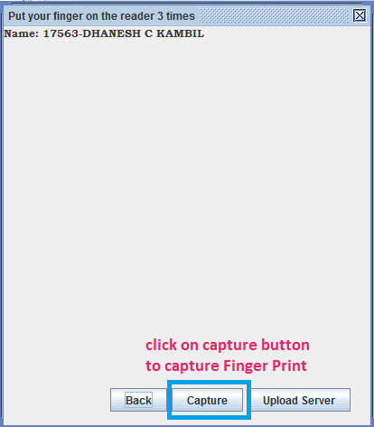 • Ask the employee to place his/her finger on the Finger print sensor for three times consecutively to capture finger print.