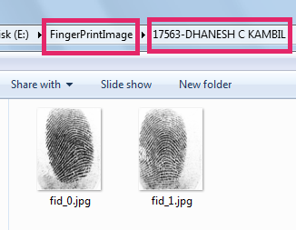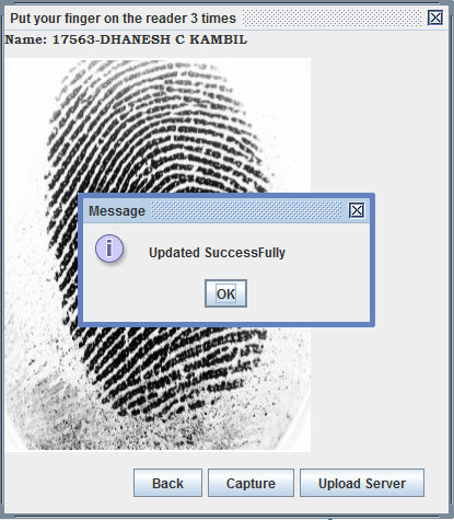 Once the FP is scanned FP captured will be displayed as shown below with the message shown in the picture below.