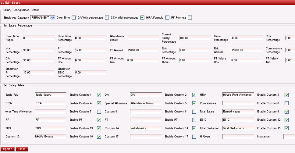 This menu can be used to configure the salary settings based on the employee category. Hence we can define different configuration for different categories. |