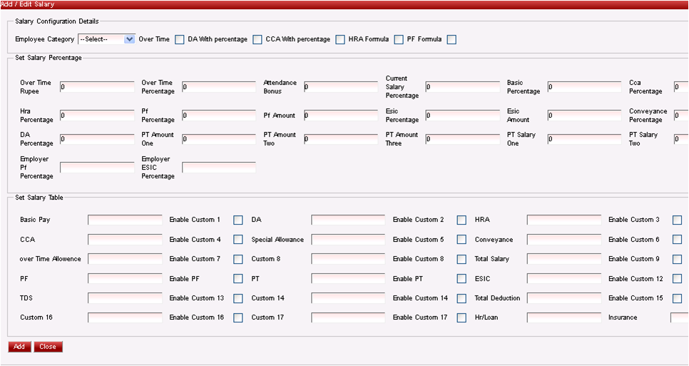If a particular salary settings is to be made globally applicable to all the employees, then there is no need to define a salary configuration. Global salary settings can be made applicable in Global settings for salary and label name can be set in Label name for the Salary. |