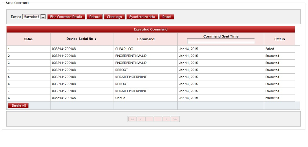 In the above image you can see to which device we have sent the command in the Device Serial No list & what are the commands we have sent in Command List, Command Sent Time,& the Status to see whether the command is executed or failed to get execute.