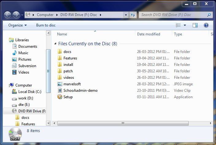 1. Open SchoolAdmin Installer DVD disk in my computer as shown below. double click on setup.exe to begin the installation.