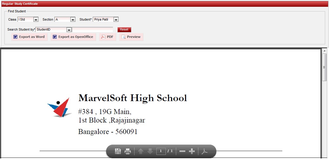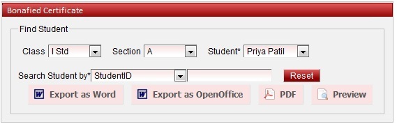 User can generate bonafide certificate of the student here, if the student request for the certificate at the time of leaving school.