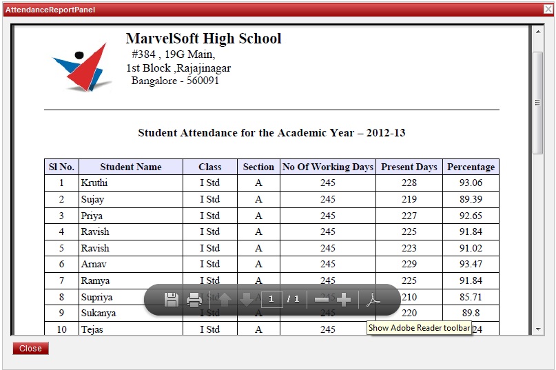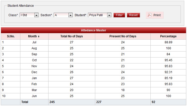 Individual attendance report will be useful to provide student at the end of the academic year or at the end of test and term result.