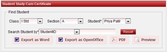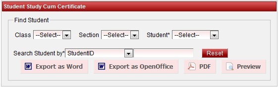 User can generate Study Cum Conduct Certificate on the request from student at the time of leaving school.