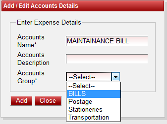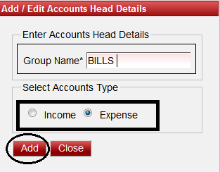 Account is used to add the name of the expense/income. Under Account Head you can create many accounts. Go to masters and click on Account. Click On ADD.