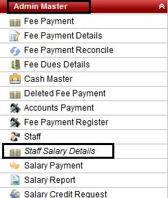 Admin Master --> Staff Salary Details