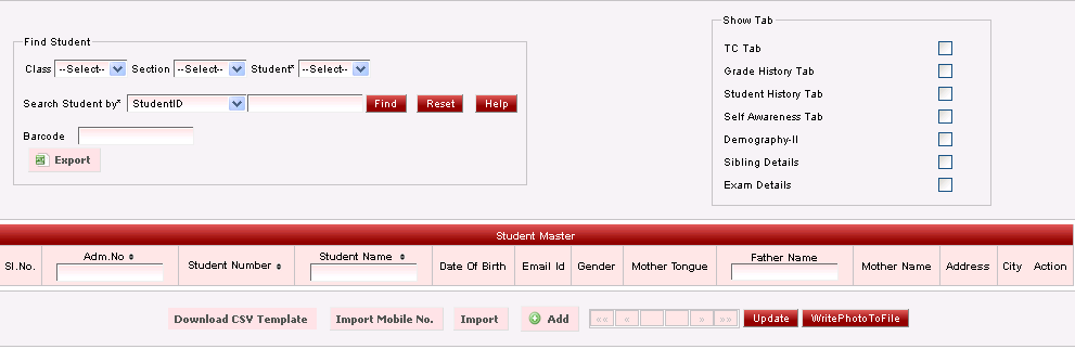 Current School Leaving Date, Current School TCNo, Has furnished Certificate,Has Student Transferred details you can update when this particular student leaves your School. While Adding a new students you can leave these columns Blank.