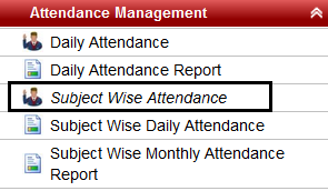 In this module you can add the subject wise attendance of the student by selecting the class, section, subject, period and date.