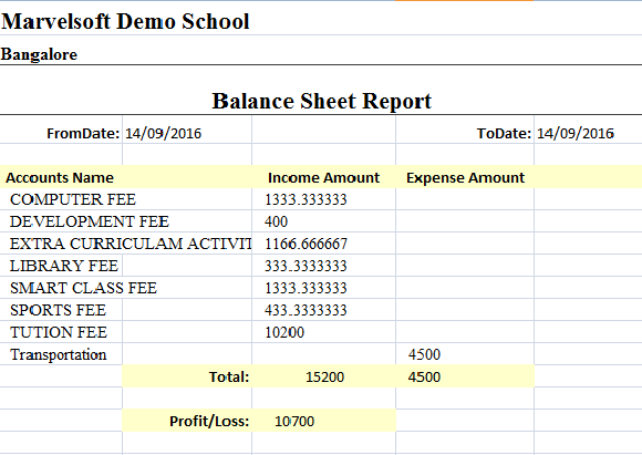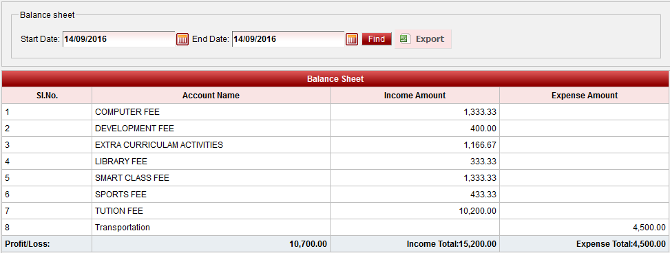 Here in the bottom row you can check Total Income, Expense Total and in left you will see Profit/Loss.