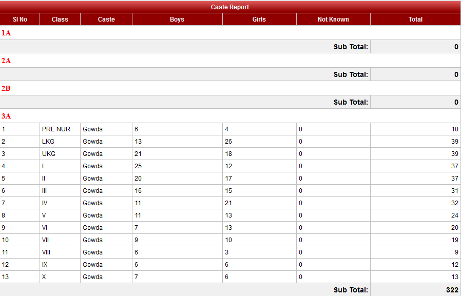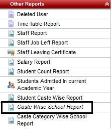 Other Reports --> Caste Wise School Report