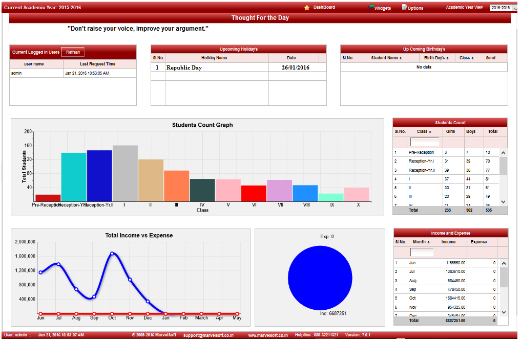 Finally, Click on Add button to create a fee. Once the data is saved you will see a Thought Successfully added message. Repeat the above steps to add all the Thought in your School. Once all the thoughts are added click on Close button to close the Add/Edit window.