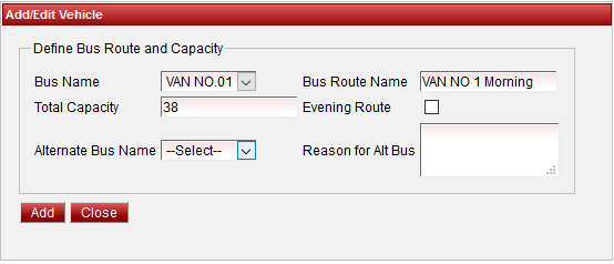 If the Bus even goes to evening route , create the Transport Vehicle record for evening route by selecting the Evening Route check box. Click on add.