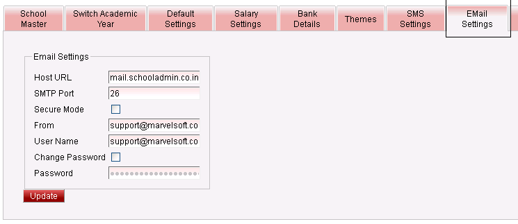 Email Configuration for sending the emails is done by selecting Options -> Settings -> Email Settings.