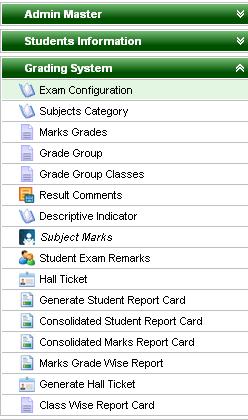 Step 1 :- Go to Grading System, Click on Exam Configuration menu.