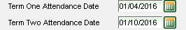 Example; - If you enter Term I attendance date as “01/04/2016” & Term II attendance date as “01/10/2017”.
