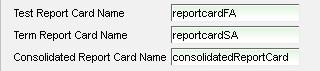 Enter Test report Card name, Term report Card name and Consolidated Report Card Name. By default, file name for test report card will be “reportcardFA” , Term report Card name will be  “reportcardSA” and Consolidated Report Card Name as “consolidatedReportCard”.