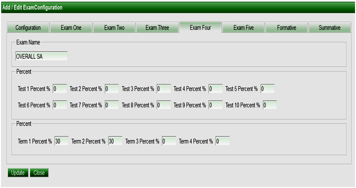 Exam four tab is used for configuring the overall Summative Assessment (SA) marks.