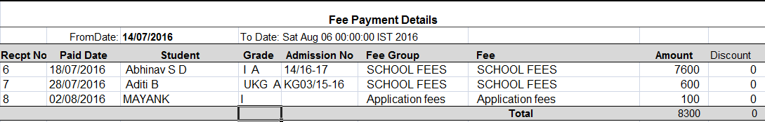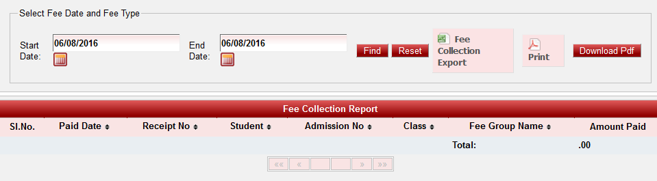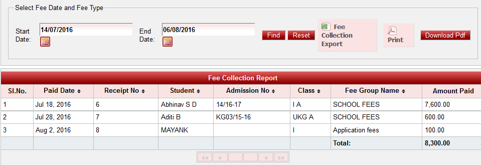 Fee Collection is used to check that how much fees you have collected in the particular time.You can check for one day or for one month also.