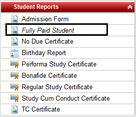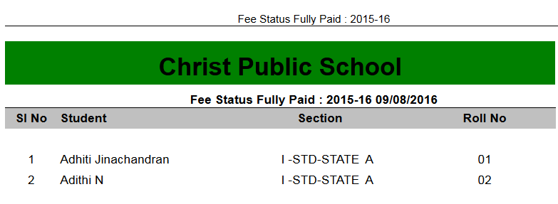 Fully Paid student report display only those student who have paid the complete fee whether it is monthly or annually. It is used to check that which student has paid the complete fee and which student has not paid the fees at the end of academic year.