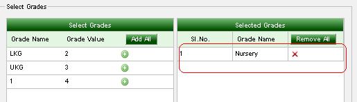 In the previous section we added separate grade group class for nursery and other classes.here we are mapping the grade group with class and the subjects so that for a particular class “GRADE GROUP CLASSES” will fetch the grades for their corresponding grade group when assigning the grades in the report card.