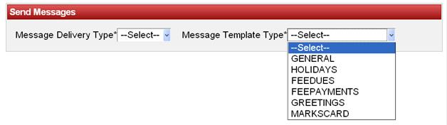 Step 2: Select Message Template Type of type GENERAL, GREETINGS, HOLIDAYS, MARKSCARD, FEEPAYMENTS and FEE DUES.