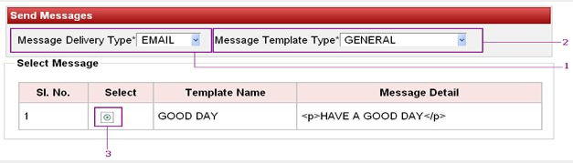 Step 6: When you click on the Next button. If you have selected Message Template Type as one these types GENERAL, GREETINGS, HOLIDAYS and “Select Message Receiver Type”  then it will move to Message Send Master which is shown as below: