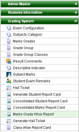 Step 1 :- Go to Grading System, click on Marks Grade Wise Report menu.