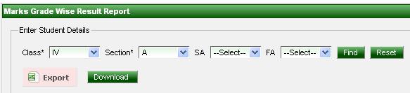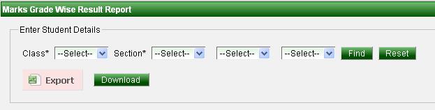 Step 2 :- Once you click on Marks Grade Wise Report, Marks Grade Wise Result Report will be opened is as shown below.
